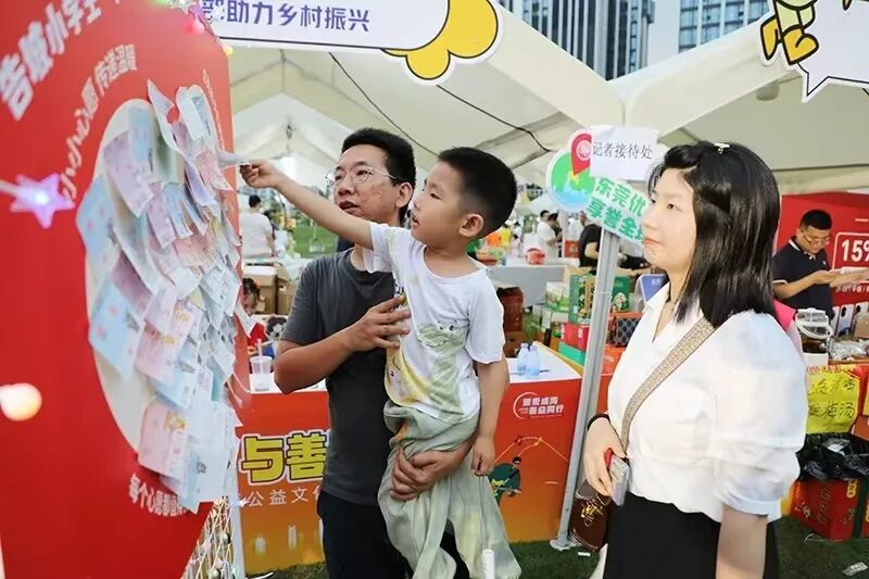 东莞市民们在“以爱为盟·与善同乐”公益文化节上认领微心愿