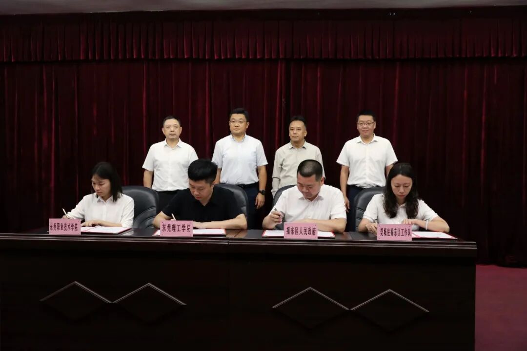 根据《东莞市省内对口帮扶协作2025年工作要点》的要求,推动地方秉承“双向赋能,协同发展”的理念,精准助力揭东区人才队伍建设,7月21日下午,揭东区政府、莞城驻揭东工作队、东莞理工学院、东莞职业技术学院就东莞、揭东两地人才队伍建设签订合作备忘录。