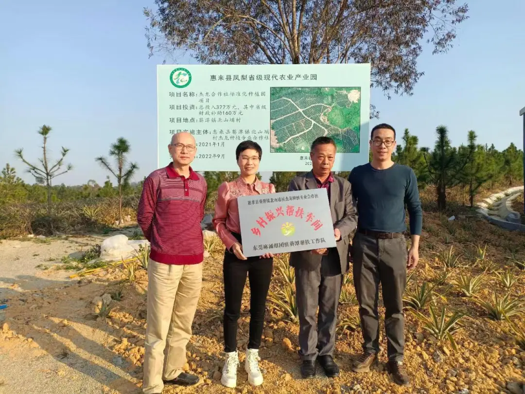 揭阳市惠来县葵潭镇,由麻涌镇政府、市卫生健康局组团派员组成的驻镇帮镇扶村工作队对口帮扶。2021年7月入驻以来,工作队积极统筹使用帮扶资金,强化科技赋能,谋划依托揭阳市现代农业产业园优势,发挥工作队职能作用,赋能凤梨产业,积极为镇村经济发展壮大作贡献。