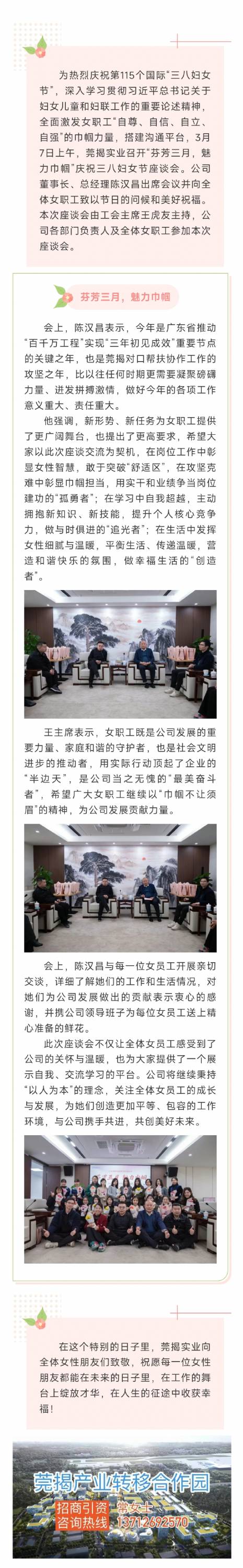 芬芳三月,魅力巾帼 —— 莞揭实业组织召开“三八妇女节”女职工座谈会